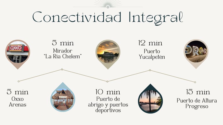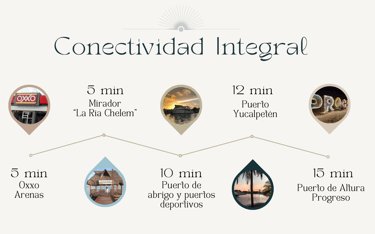 A solo 5 minutos del mirador de “La Ría Chelem” y a 15 minutos del Puerto de Altura de Progreso. Rodeado de servicios, conectividad y mar.